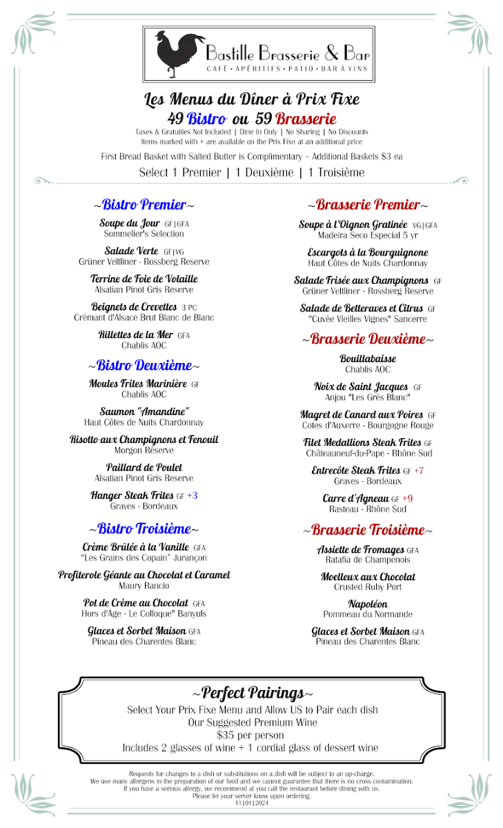 Welcome to Bastille Brasserie & Bar, a culinary gem nestled in Alexandria, VA, where the essence of French cuisine comes alive. Renowned for its vibrant flavors and elegant atmosphere, the menu is a celebration of traditional offerings paired with modern flair. From the rich onion soup to the exquisite duck à l'orange, each dish reflects authenticity and meticulous craftsmanship.